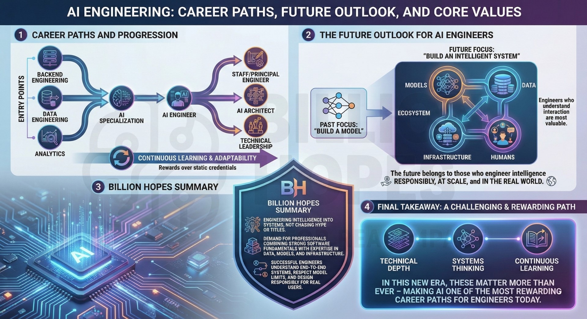 The most successful AI engineers will be those who understand end-to-end systems, respect the limits of models, and design responsibly for real users. In this new era, technical depth, systems thinking, and continuous learning matter more than ever – making AI one of the most challenging and rewarding career paths for engineers today.