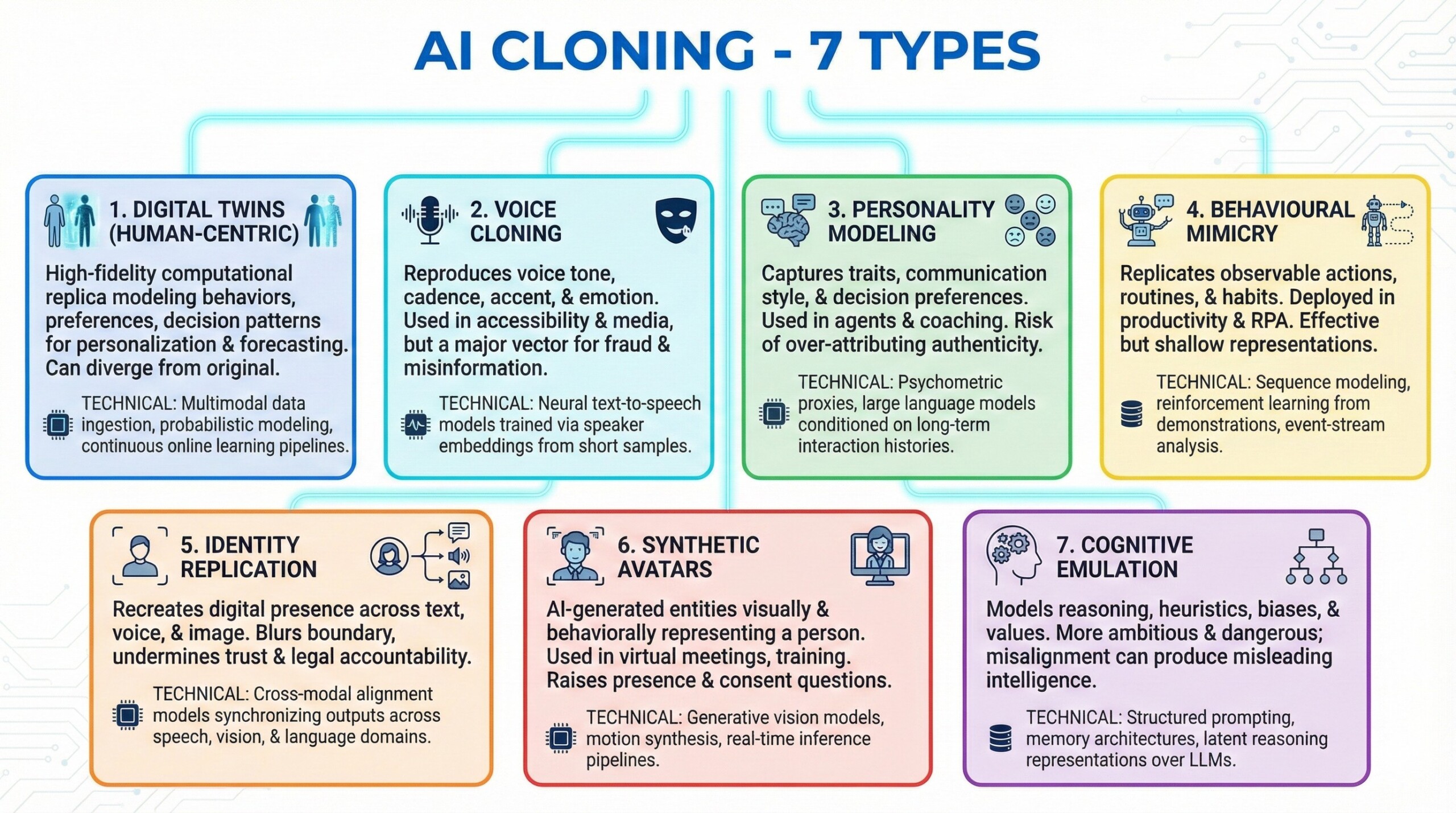 Below are 15 foundational concepts that together define the emerging AI cloning landscape.