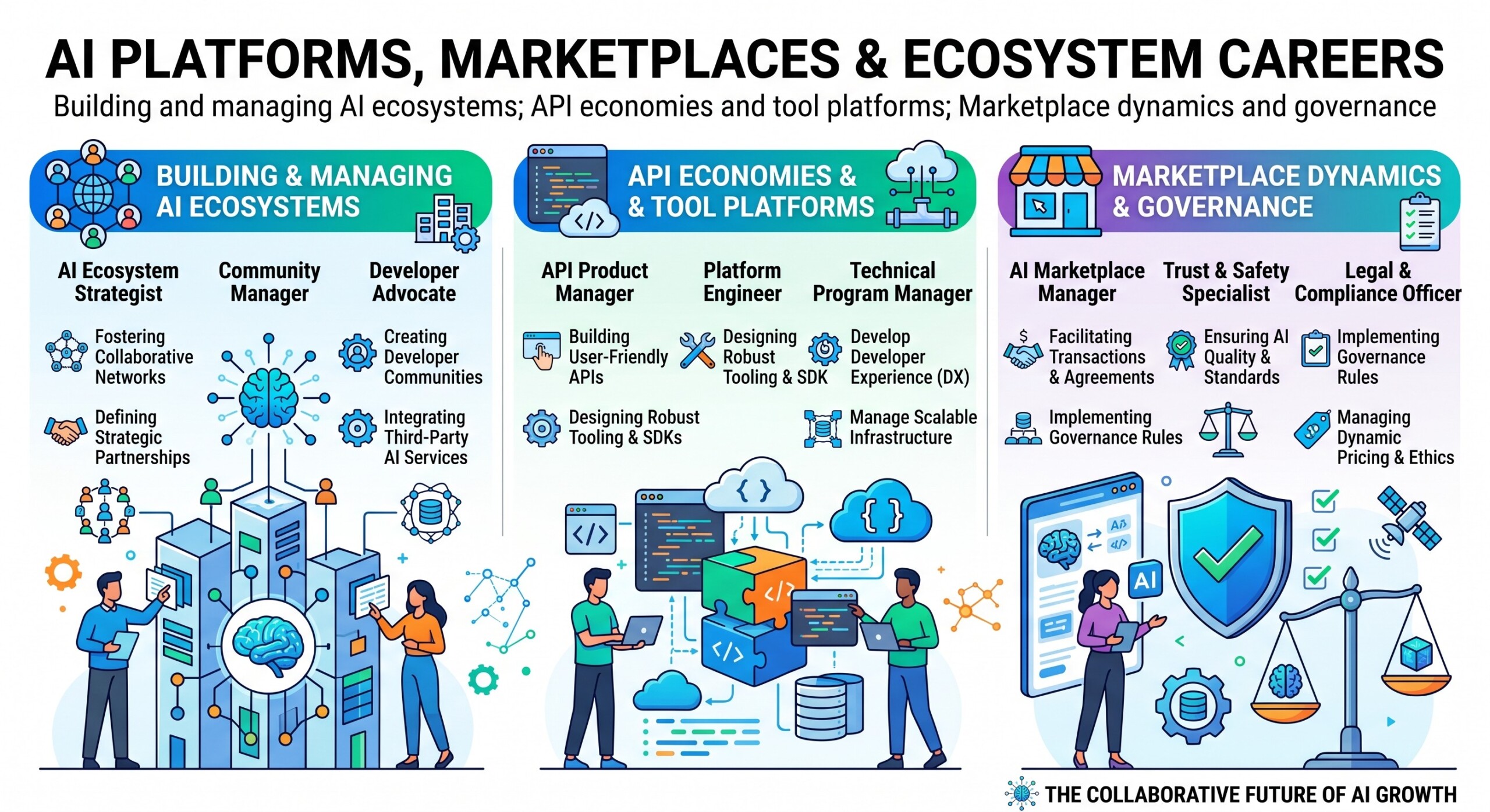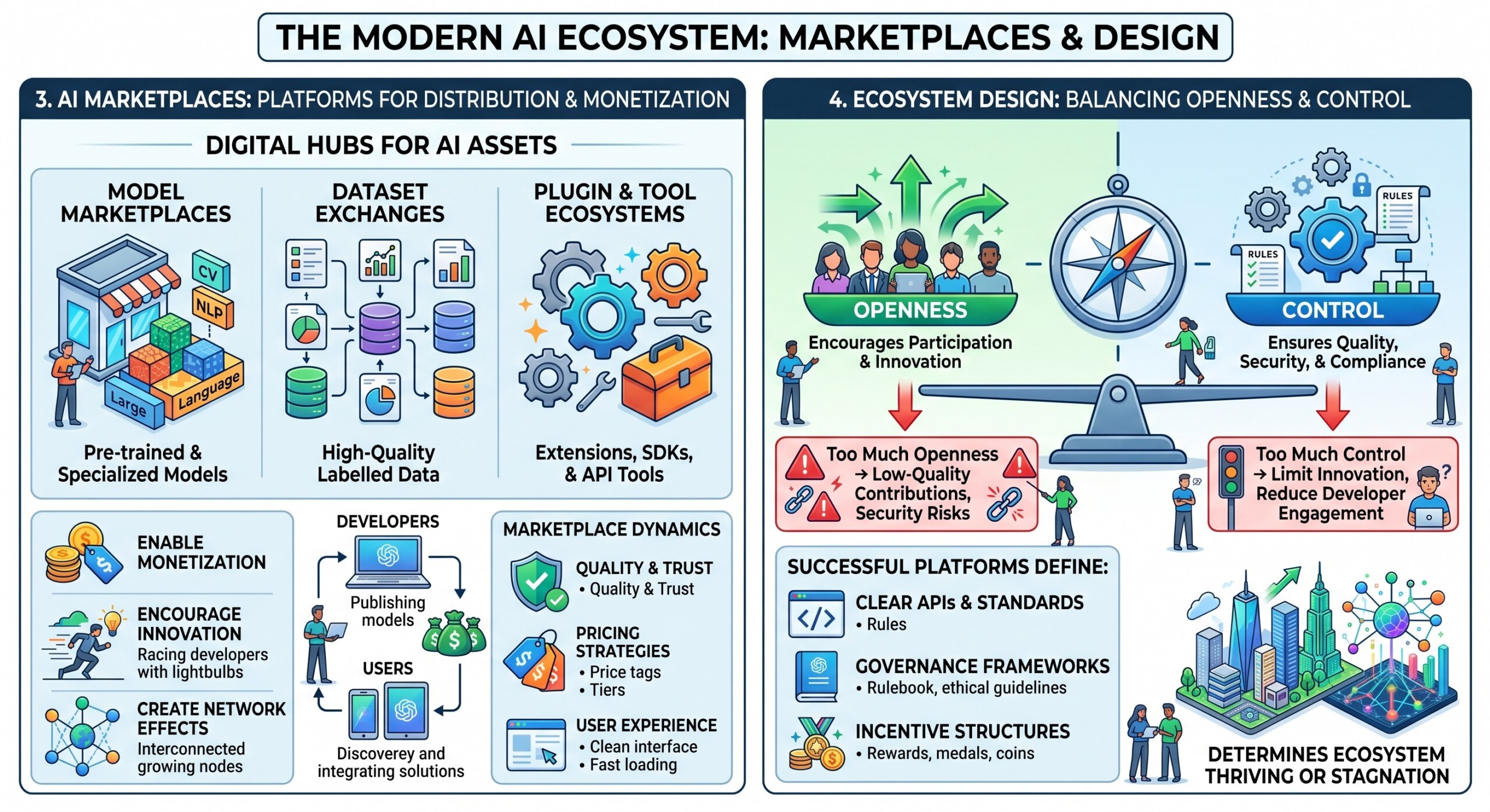 Building and managing AI ecosystems; API economies and tool platforms; Marketplace dynamics and governance