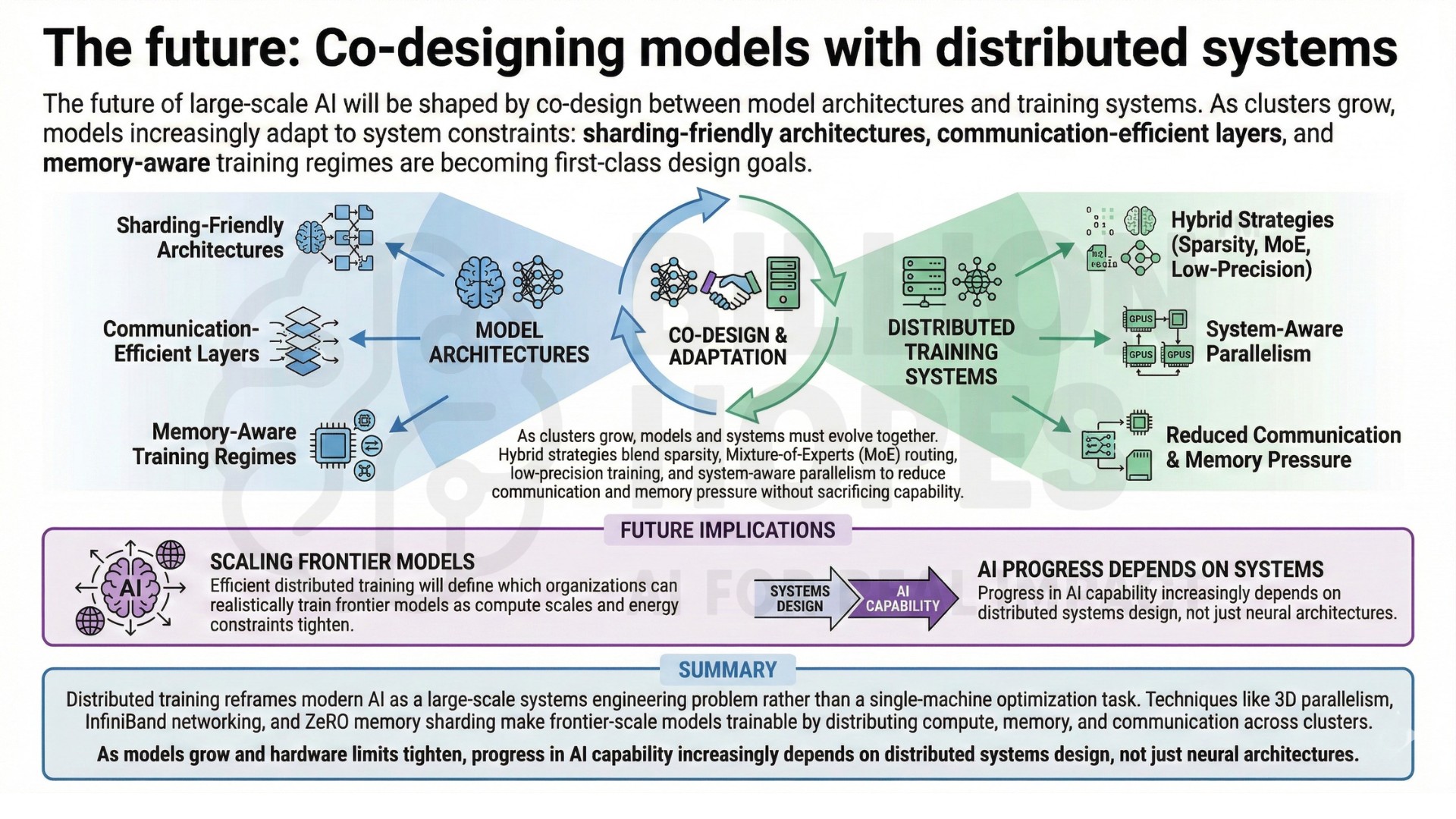 The future of large-scale AI will be shaped by co-design between model architectures and training systems. As clusters grow, models increasingly adapt to system constraints: sharding-friendly architectures, communication-efficient layers, and memory-aware training regimes are becoming first-class design goals.