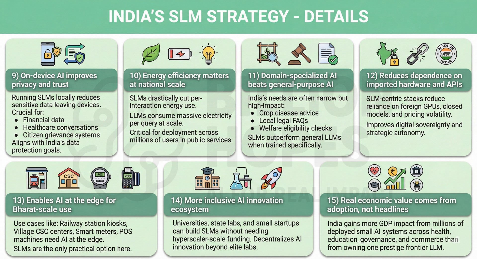 8) Faster model iteration for Indian startups – SLMs allow rapid fine-tuning for: