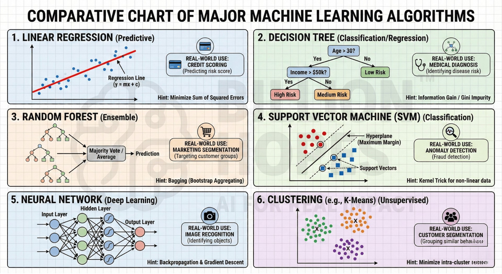 Machine learning has hundreds of algorithms, each excelling in specific scenarios.