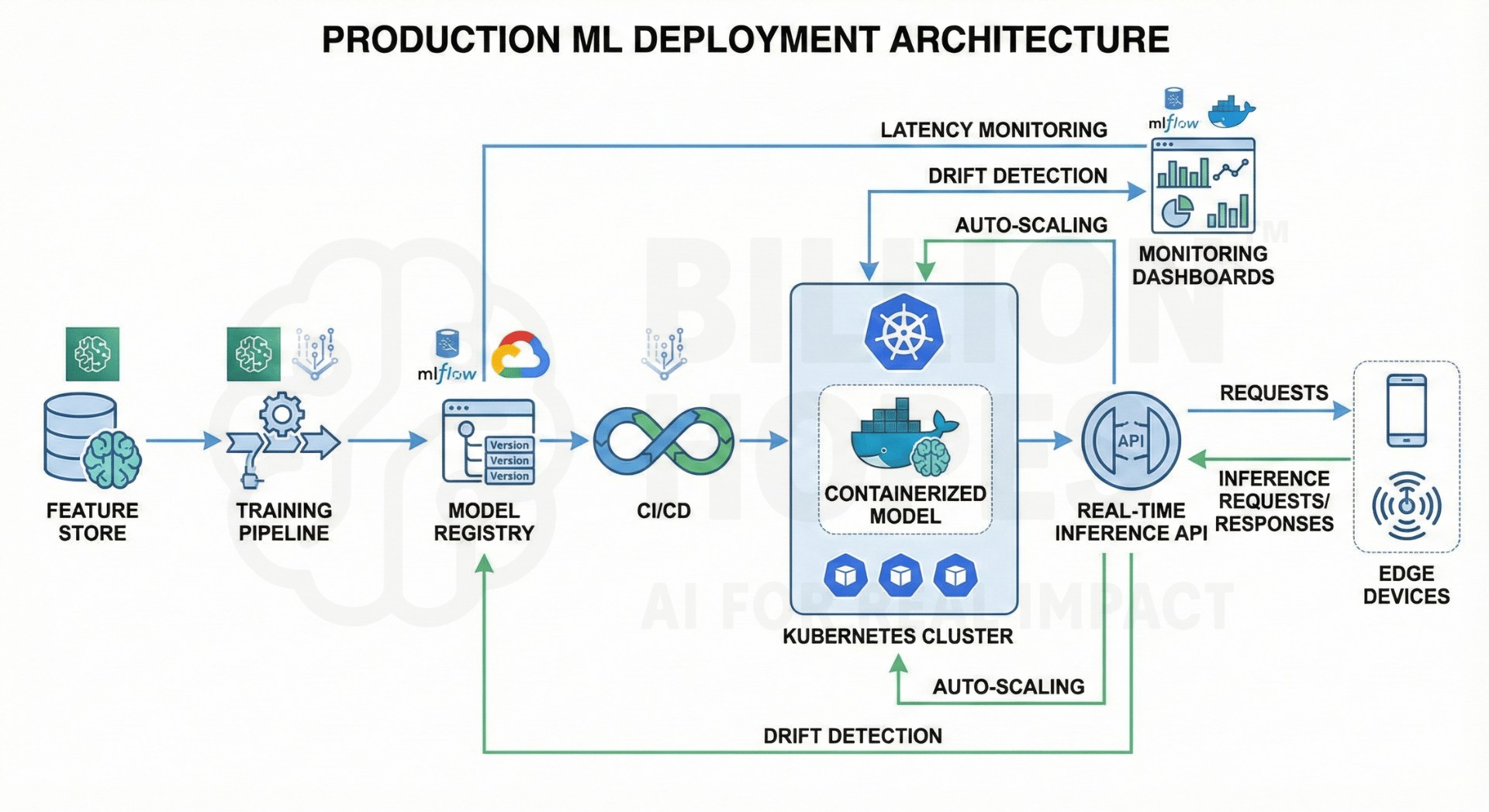 Combines DevOps + Data Engineering + ML.