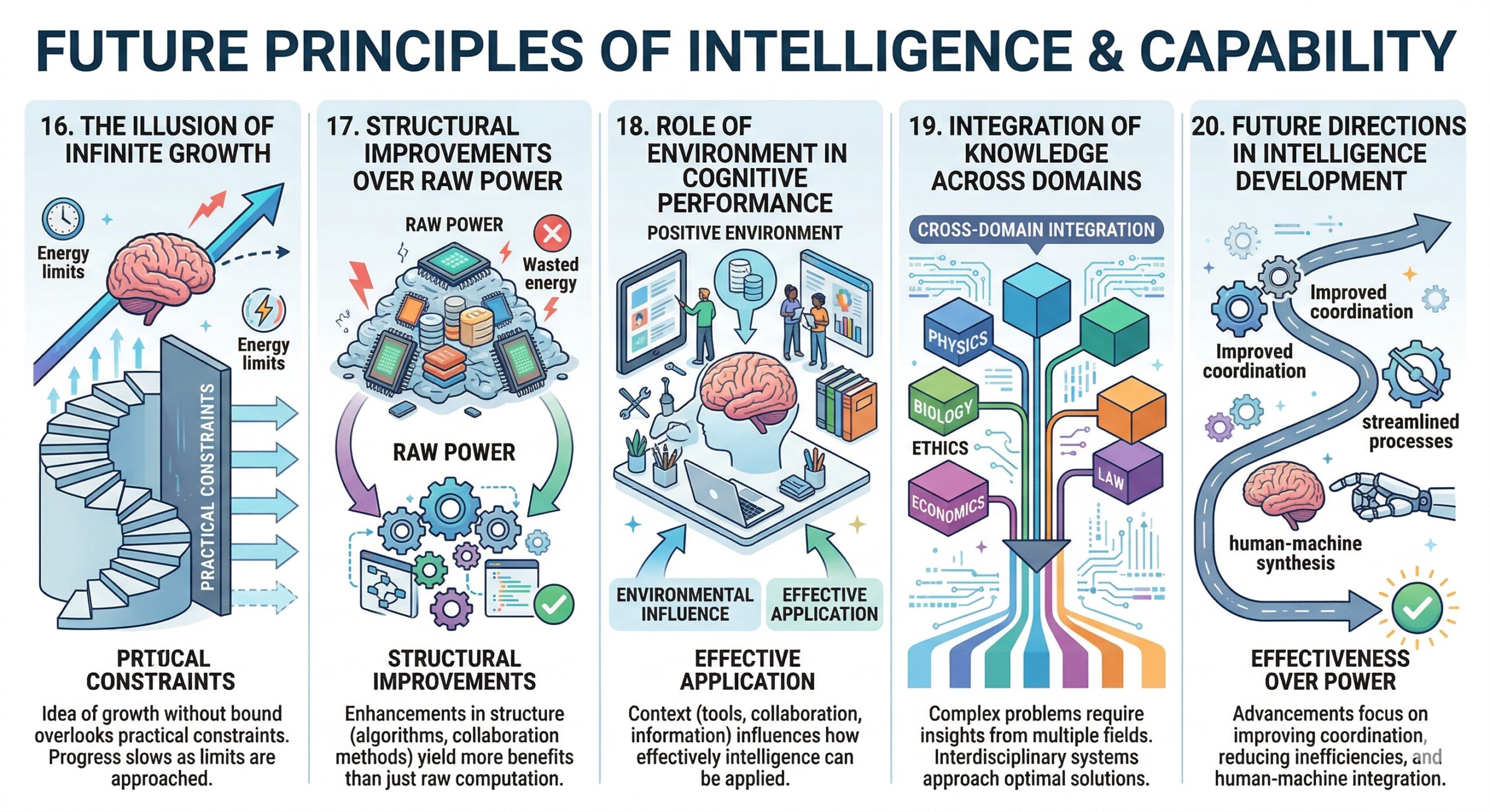 Intelligence is not an endless ladder that keeps rising without limits. It is a system shaped by constraints, efficiency, and the ability to use available resources wisely. Whether in humans or machines, true progress comes not from simply increasing scale, but from improving structure, coordination, and the quality of interaction between information, tools, and decision-making. The future of intelligence will therefore depend less on creating ever more powerful systems in isolation, and more on building well-coordinated human and AI ecosystems that can operate close to their practical limits with clarity, consistency, and purpose.