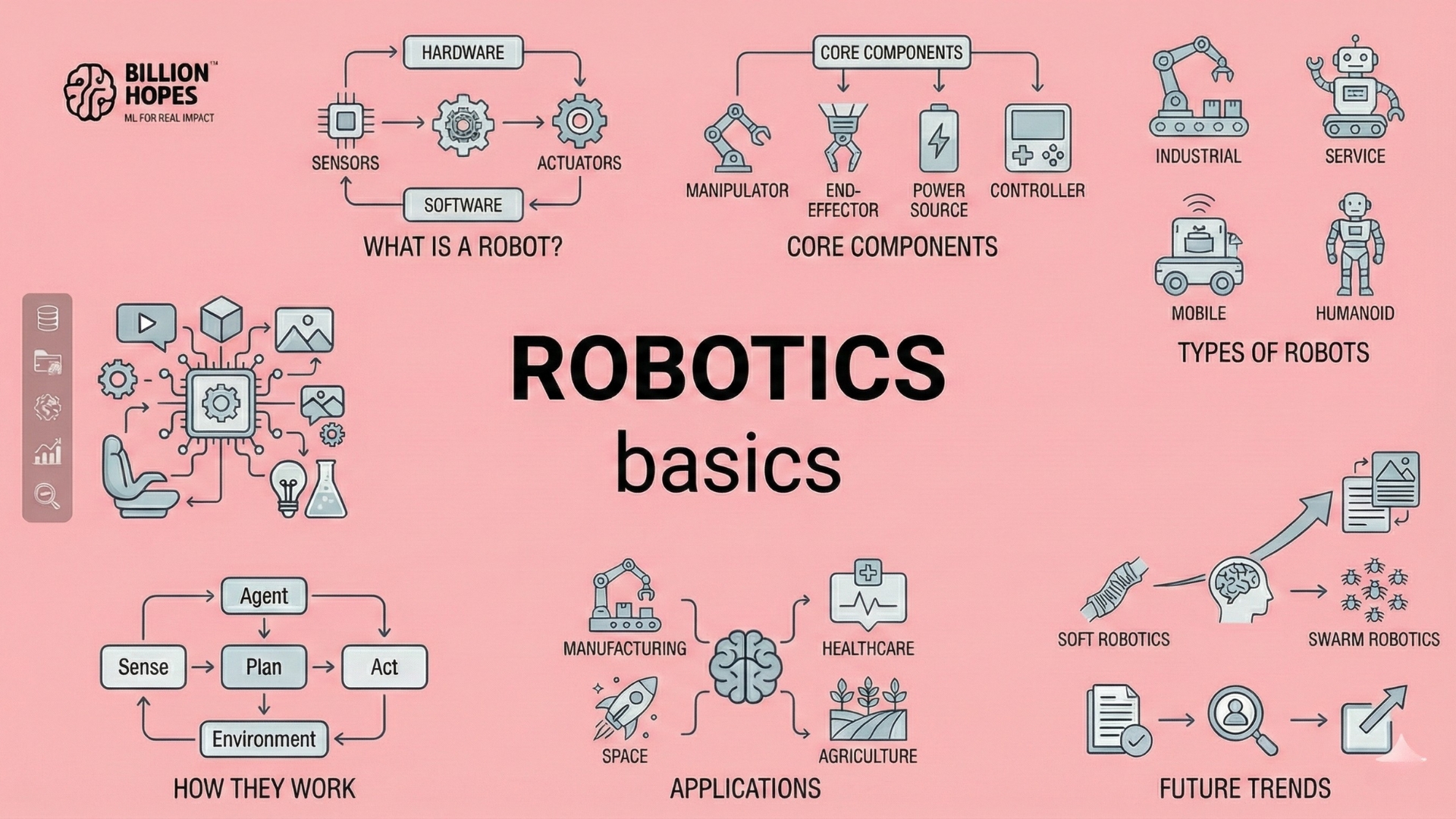 Robotics is the discipline of building machines that act in the physical world. Grounded in engineering, control theory, and increasingly AI, robots sense, decide, and move to perform useful tasks. While automation provides efficiency, intelligence adds adaptability. Understanding robotics basics is essential for navigating a future where humans and machines increasingly work side by side – not as rivals, but as collaborators.
