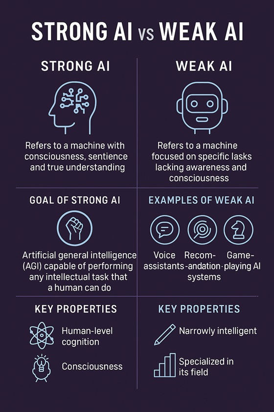 In summary, Weak AI is task-specific and utilitarian, while Strong AI is aspirational and human-like. Understanding the difference is essential—not just for researchers, but for policymakers and the public—so that expectations, responsibilities, and risks are aligned with technological realities.