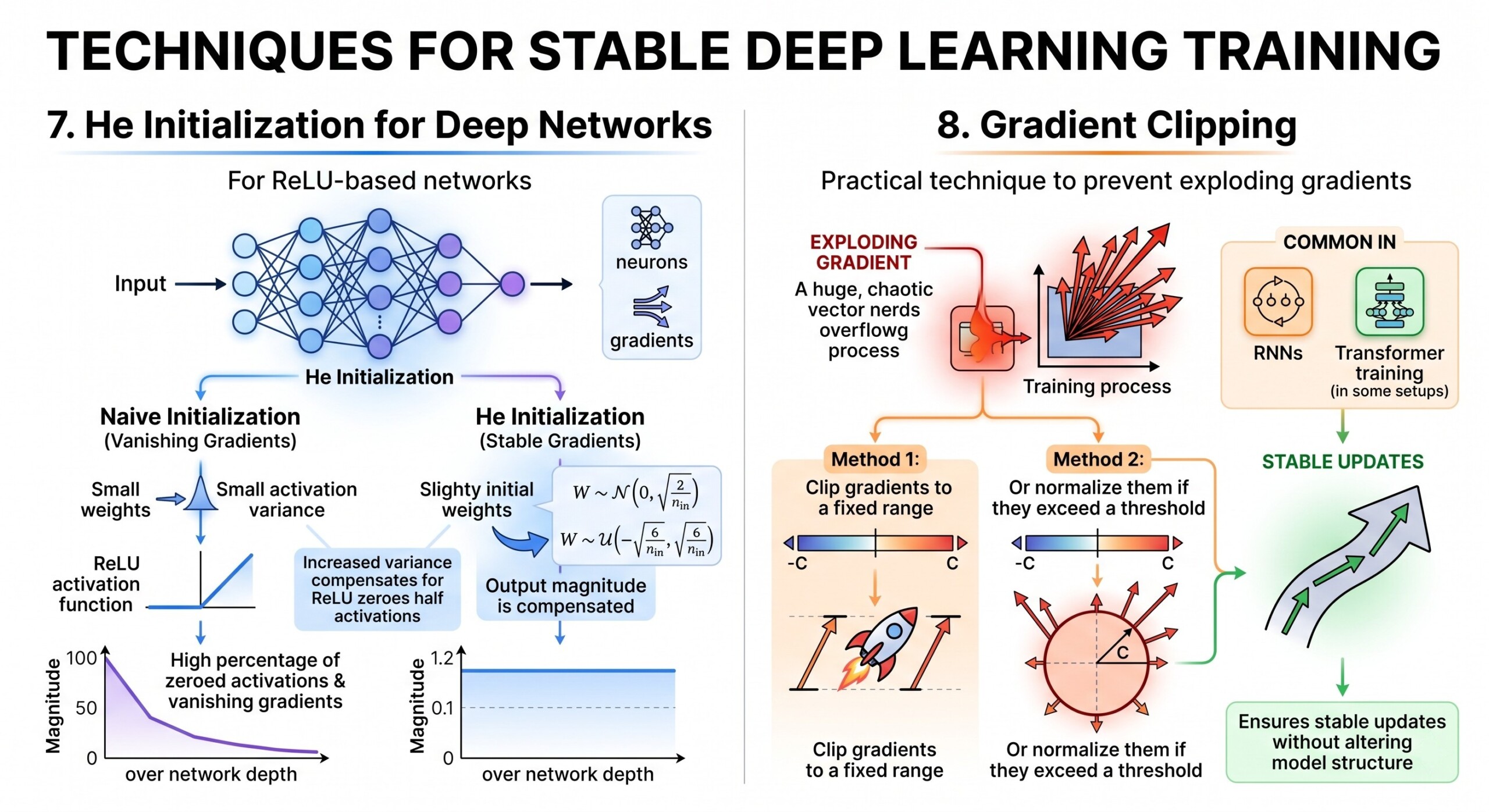 • He Initialization → for ReLU-based networks