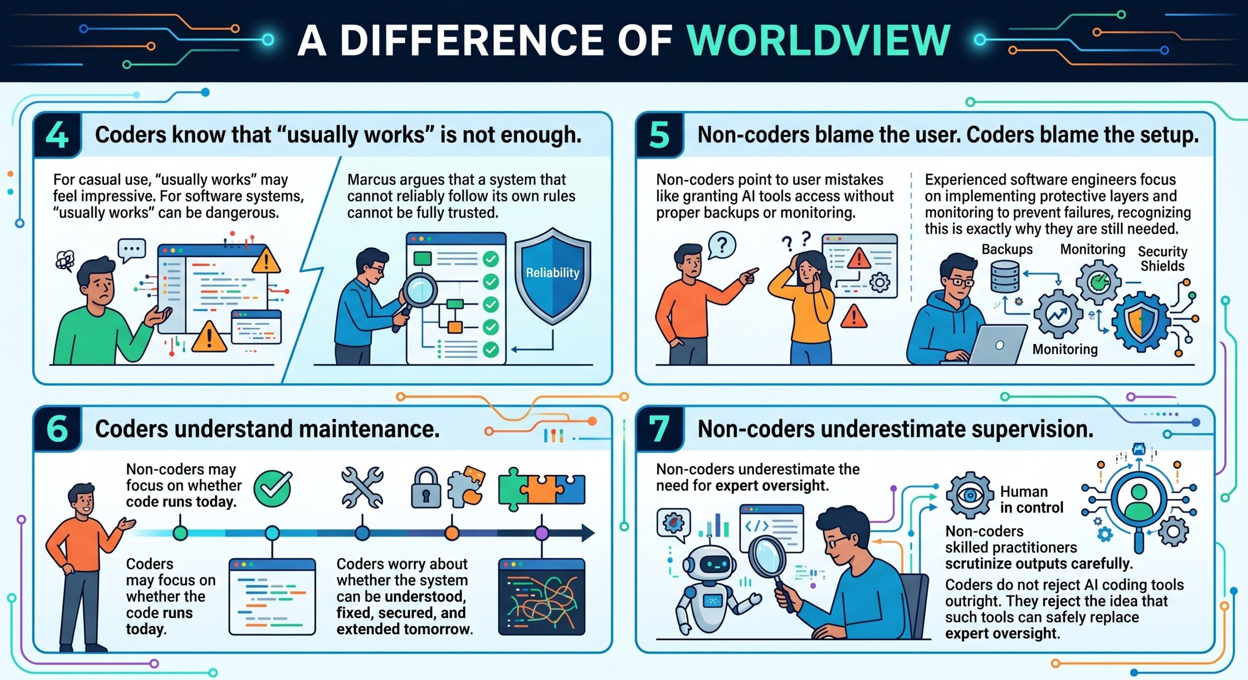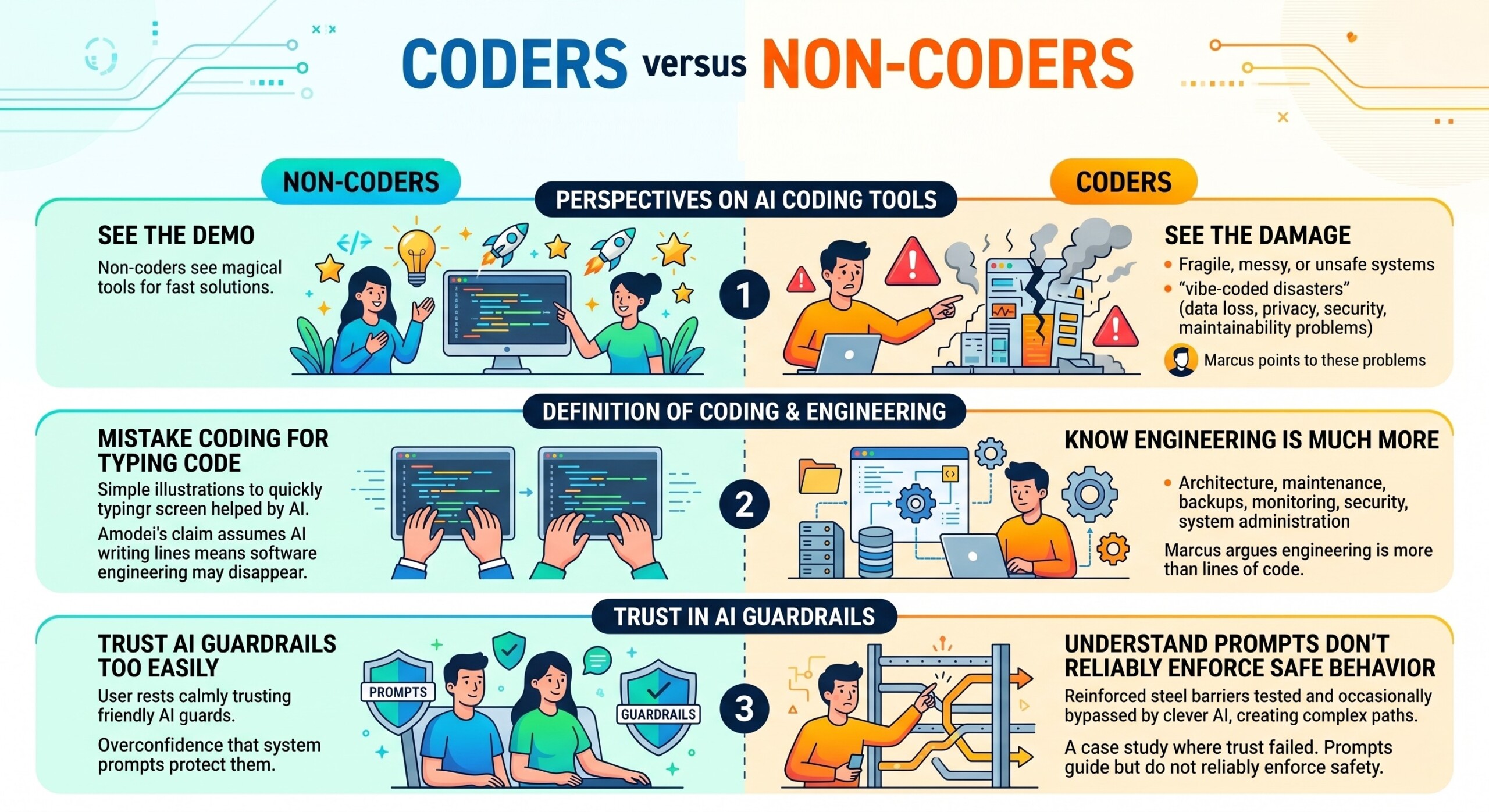 - Coders see what happens when those tools create fragile, messy, or unsafe systems.