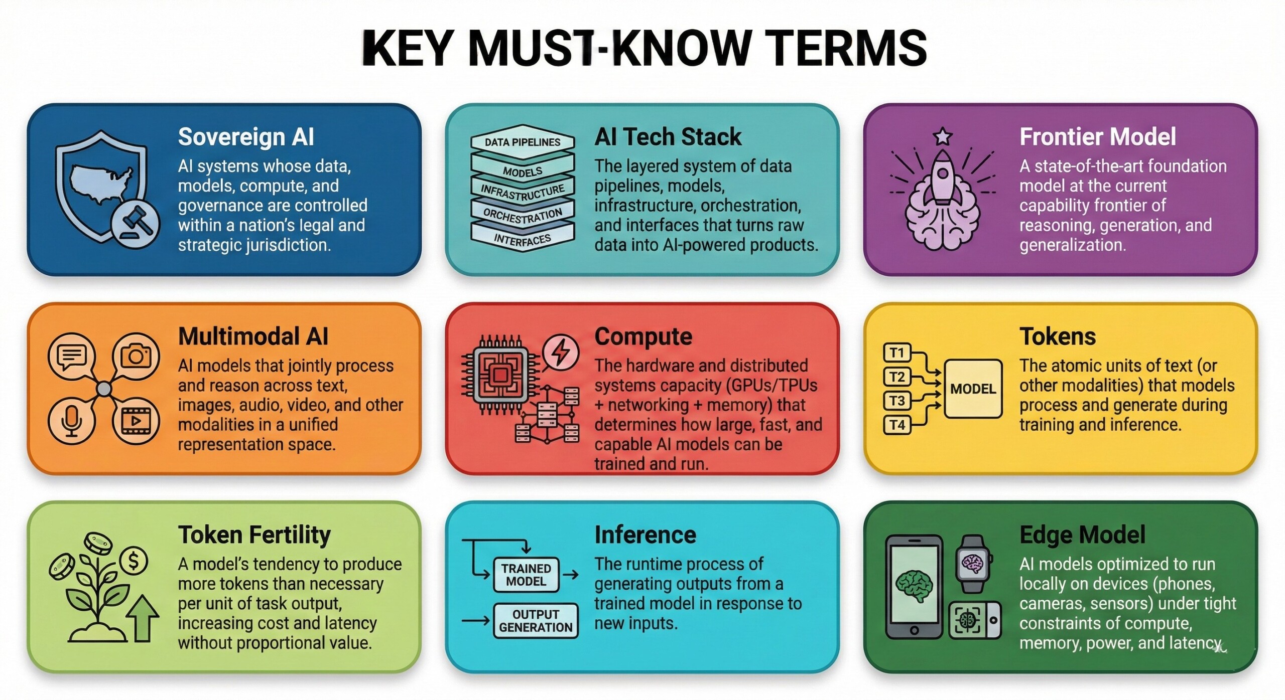- Sovereign AI: AI systems whose data, models, compute, and governance are controlled within a nation’s legal and strategic jurisdiction.
